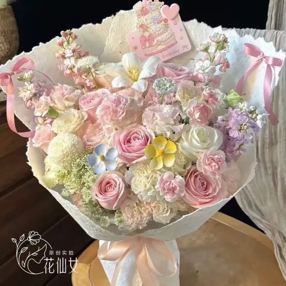 【粉派甜心】粉玫瑰混搭郁金香花束生日鲜花生日礼物梦幻混搭对象送朋友鲜花配送花店送花上门